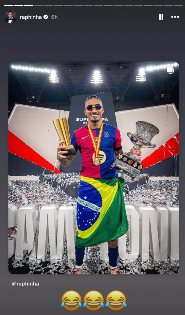 The Brazilian winger added laughing emojis to a handful of the stories he posted. He highlighted some of his most notable achievements, including a compilation of the 34 goals he scored for Barcelona that fueled the club’s first ever domestic treble.